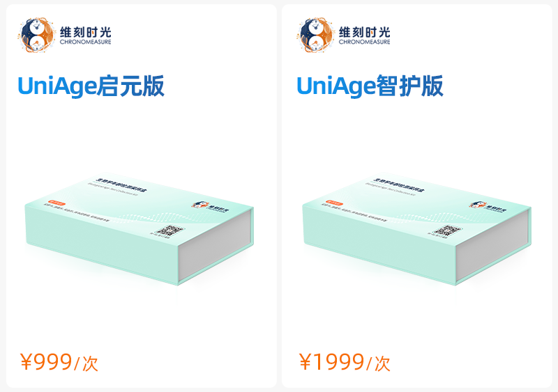 维刻时光DNA甲基化年龄时钟系列产品均基于“UniAge模型”的DNA甲基化年龄预测技术,通过分析基因组DNA甲基化模式评估个体生物学年龄。这里需要特别说明的是,检测前不需要提供 日历年龄,即可得出生物学年龄。智护版及以上产品新增器官特异性时钟,可精准评估心、肝、免疫系统等具体器官/系统的衰老状态。